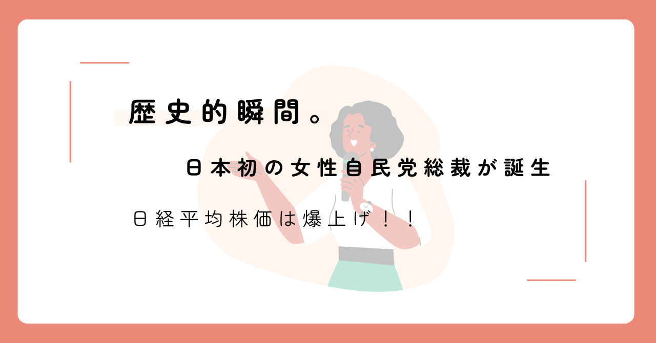 - 日本初の女性自民党総裁が誕生し、日経平均株価は爆上げ!!